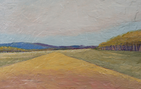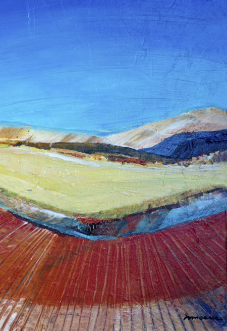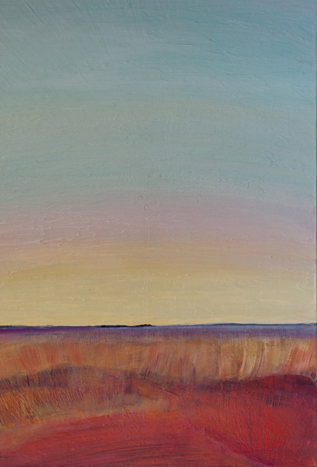 My landscapes are not intended to be specific places. Elements in Nature are treated semi abstractly to suggest different locales, valleys, fields, expansive desert. An element of fantasy comes through sometimes in a seemingly imaginary colour scheme and in the sense of pattern that I often see in Nature. All these elements are intentional and meant to transport the viewer to a place of imagining that only he or she knows.