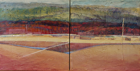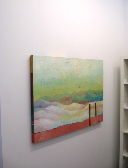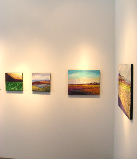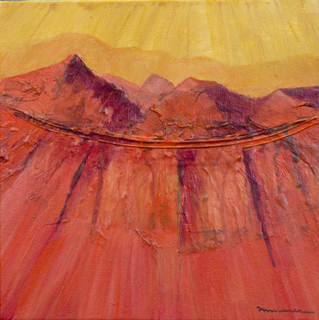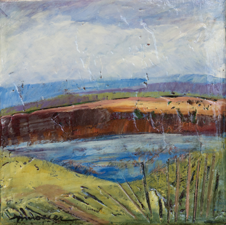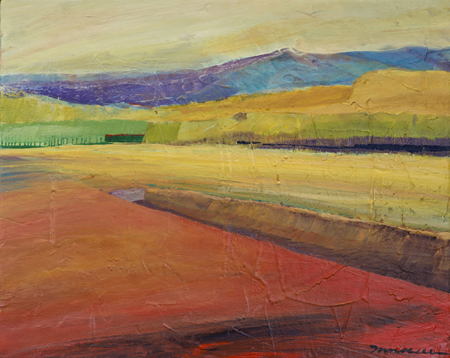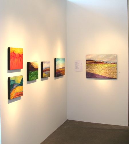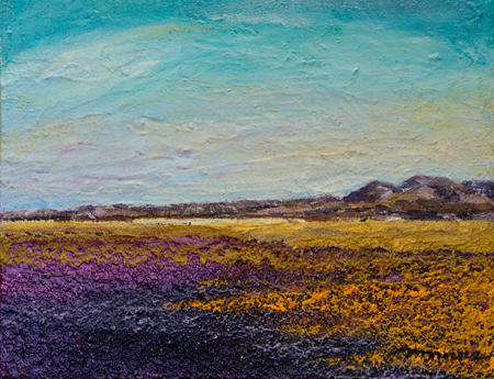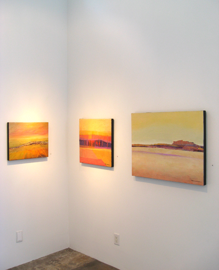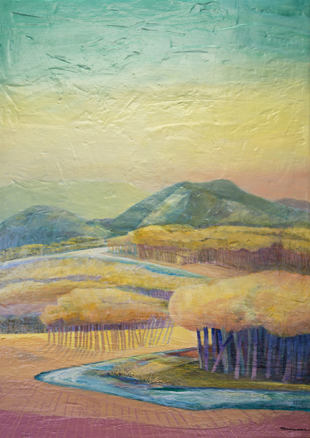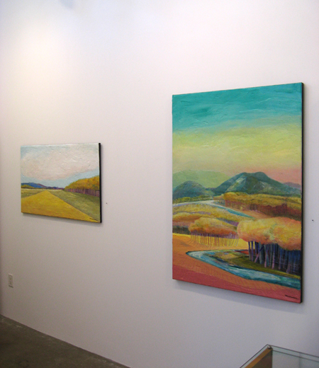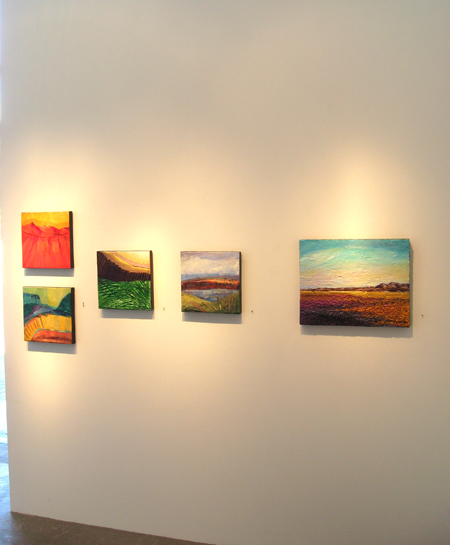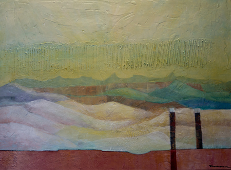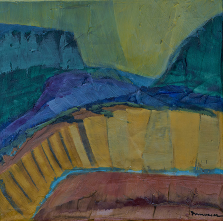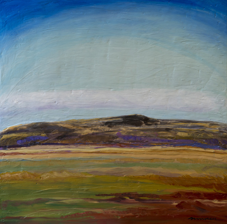 The landscape based paintings in this exhibit lean heavily on images that I see, along with feelings that I experience, in New Mexico. The terrain is part of the Chihuahuan desert’s vast open spaces against mountainous backdrops. My paintings, although personal, speak of the universal harmony between humans and nature. They are deliberate statements honouring the beauty that surrounds us.