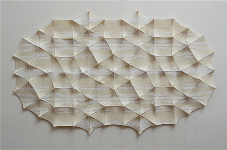 Chung-Im Kim, semonemo IV, 2015, industrial felt, thread, screen printed, hand stitched, 36 X 39 X 2 in.