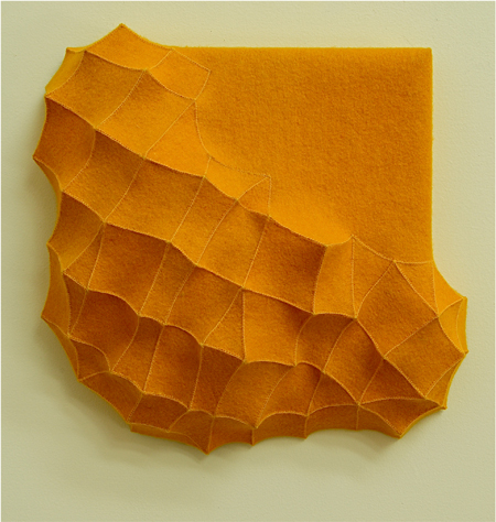 Chung-Im Kim, mutation IV (detail), 2015, industrial felt, thread, dyed with onion skin hand stitched, 18 X 14 X 3.5 in.