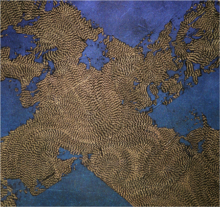 Donald Andrus, ICARUS No. 20 (detail), 2015, colour shift paint, gel pen, fresco, epoxy resin on Meranti Board, 32 1/4 X 48 in.