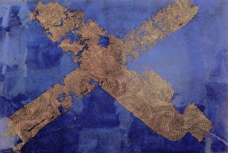 Donald Andrus, CICATRICE FIELD, 2015, oil, acrylic, colour shift paint on canvas, 36 X 48 in.