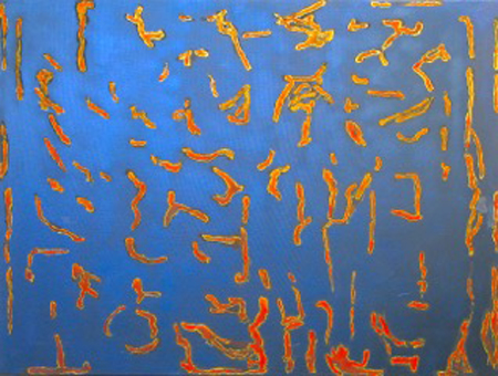 Donald Andrus, SWEEPER, 2015, dupli-color, gel pen, fresco, epoxy resin on canvas, 30 X 40 in.