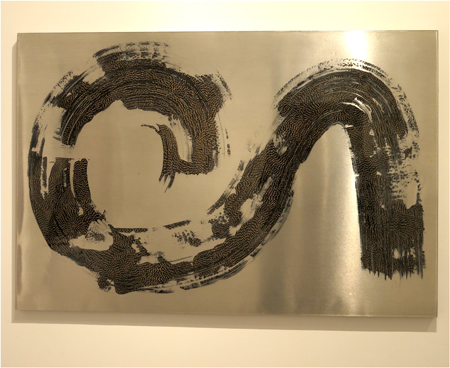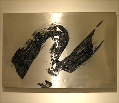 Donald Andrus, SWISH (1), 2015, gel pen, fresco, epoxy resin on aluminum, 24 X 36 in.