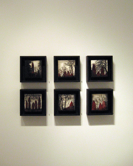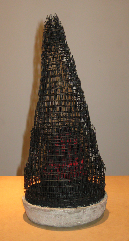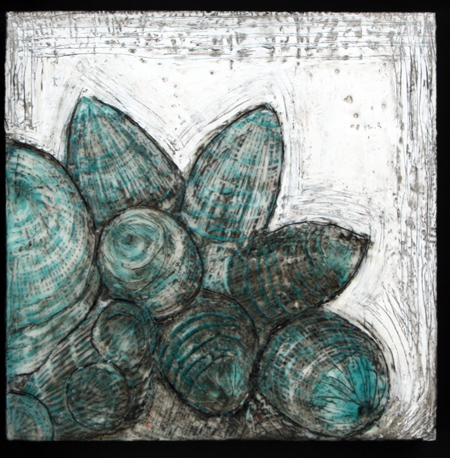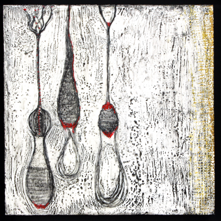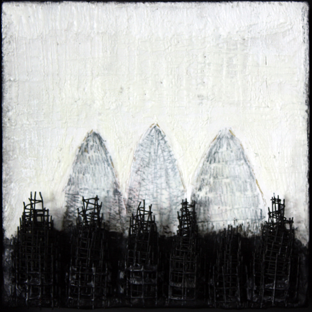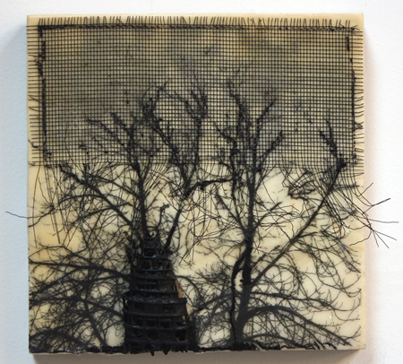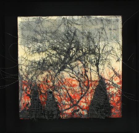 This body of encaustic and mixed media work revisits some of those places, objects and forms. The vehicle for my previous representation of South East Asia was a series of sculptures: assemblages of wire, reed, bamboo, concrete and handmade paper. This new series of pieces combines some original inspirational photographs as well as photographs and ideation drawings from the earlier sculptures – all together in a wax and pigment medium called encaustic painting. The two dimensions of the painted surfaces become three-dimensional when wire elements are embedded into the heated wax. Although the original objects may seem ambiguous in their new setting, there is a familiarity – a resemblance to the many objects and images depicted in my work for some 15 years.
