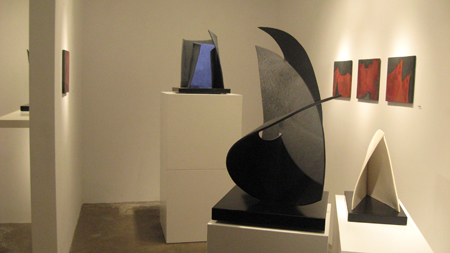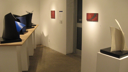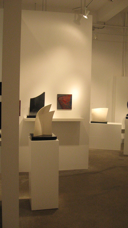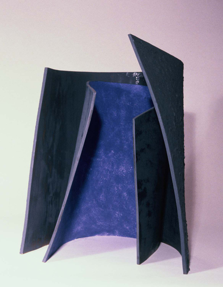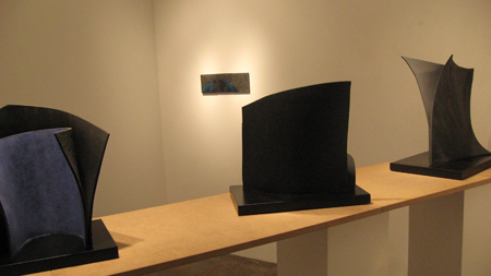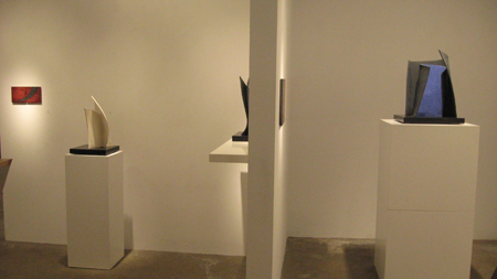 Hanna says this about her work, “The work shown represents my recent effort to trace the configuration of Space. I start with two slabs of clay and place them in relation to each other. This leads to endless variations of tensions and resolutions in their encounter. Points have no dimension, lines are literally one-dimensional, create no space, are no/where rather than now/here; space only emerges through their interactions. Although the pieces are no larger than approximately 50 X 50 cm. they can also be imaged and imagined as monuments. My new work addresses encounters within and between us which call for new forms of expression.”