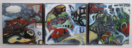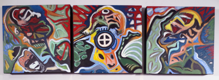 Joseph Muscat, Embedheads, 2013, acrylic canvas, 3 panels 12 X 12 in. each, framed