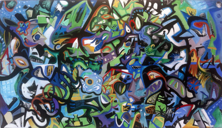 Joseph Muscat, Sensory Overload, 2013, acrylic on canvas, 32 X 56 in., framed