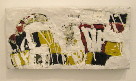 Katja Jacobs, Wordplay #8, 2013, encaustic on panel, 8 X 16 in.