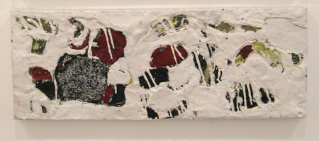 Katja Jacobs, Monogram #1, 2013, encaustic on panel, 9 X 24 in.