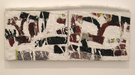 Katja Jacobs, Monogram #3, 2013, encaustic on panel, 9 X 24 in.