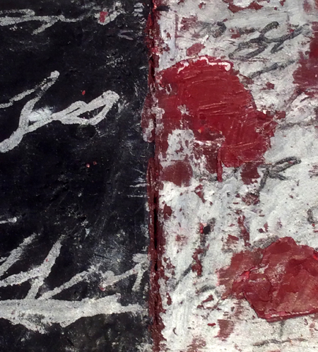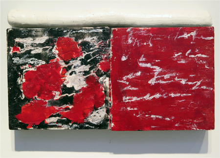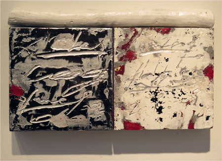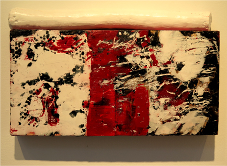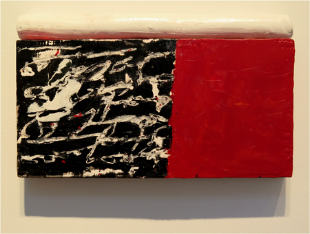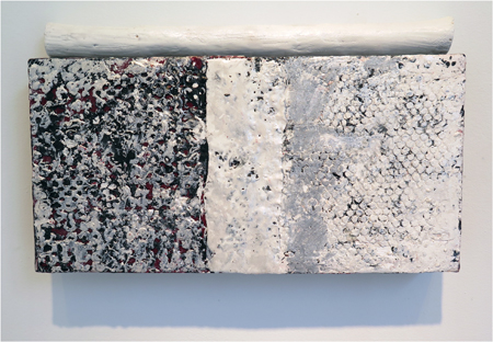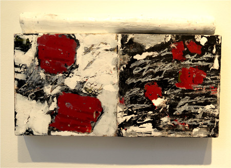 Katja Jacobs, Traces of Words #1, encaustic on wood panel and stick, 7 1/4 X 12 in.
