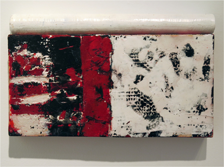Katja Jacobs, Traces of Words #13, encaustic on wood panel and stick, 7 1/4 X 12 in.