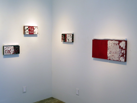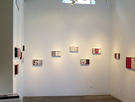 Katja Jacobs, Traces of Words #5, encaustic on wood panel and stick, 7 1/4 X 12 in., SOLD.