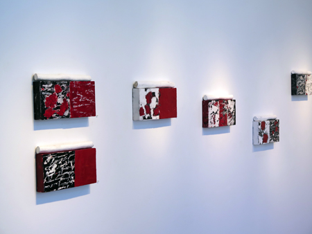 Katja Jacobs, Traces of Words #14, encaustic on wood panel and stick, 7 1/4 X 12 in.
