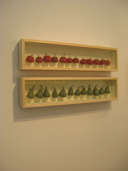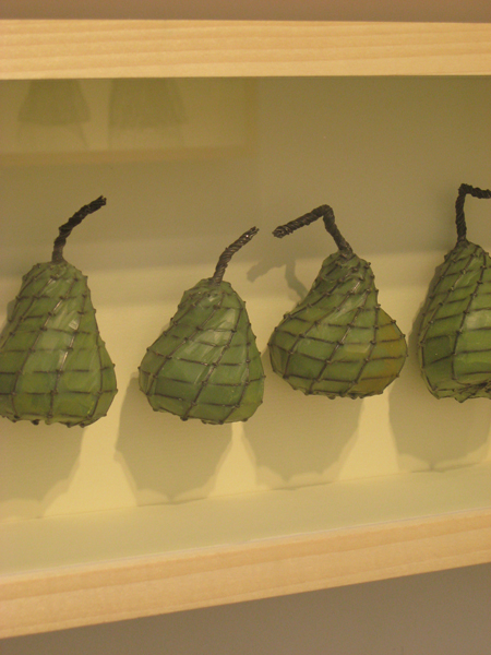 Maggie Hogan, Permanent Produce- Pears, 2009, steel wire, wax, 8 X 34 X 3 1/2 in., SOLD.