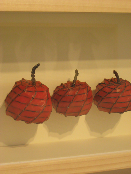Maggie Hogan, Permanent Produce- Apples, 2009, steel wire, wax, 8 X 34 X 3 1/2 in.