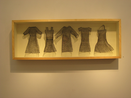 Maggie Hogan, Old Attire Rewired- Dresses, 2008, steel wire, 13 X 36 X 4 1/2 in.