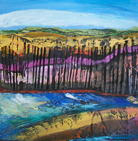 My landscapes are not intended to be specific places. Elements in Nature are treated semi-abstractly to suggest different type locales… valleys, fields, wherever… The element of fantasy that comes through in a seemingly imaginary colour scheme is intentional and meant to transport the viewer to the Edge of Somewhere.