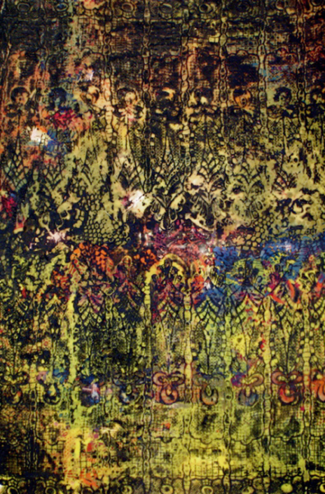 Michèle White, Yellow Wallpaper 1, 2004, encaustic on wood, 72 X 48 in.