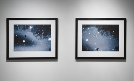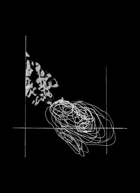 In the third series “nightdrawing” I continue my exploration of walking, drawing and mapping through the performative action of walkingmy imaginary “dreamwalks”. A number of my original “dreamwalk” drawings were input into a GPS handheld tracker as a “map” and given GPS coordinates, which were then attributed to a specific field near my home. These photos exemplify the marriage of psychogeography and the physical re-tracing of the walk, with their powerful impact resonating from the disorienting orientation of their location and position in space.