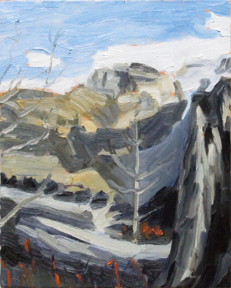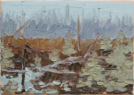 With a nod to the Group of Seven, this work is about seeing paradise and nothing else. Maybe it’s just a longing for denial, or to take a break from being critical. Look how beautiful it is, or was, at least 40 or more years ago. Unfortunately nature already was an endangered species confined to museums, parks and shrinking ‘wilderness areas’ at that time. There aren’t too many people talking about what’s happening to our world. I can’t stop thinking about it myself.