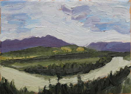 I’ve started painting landscapes; picture-perfect landscapes, iconic images of Canada from coffee table books and postcards. They disclose nothing of the true shape and condition of our country and the people living in it. There are no dams, no oil sands, no images of poverty, no clear-cuts, no forest fires, no landfills, no droughts, no skyline of exhaust fumes, no extinctions, no mining, no oil spills, no human rights abuses, no pilfering of land, no nuclear plants, no imposed economic dependency and colonization, no damaging agricultural practices, no economic crises, no nuclear stockpiles, no wars; just pretty pictures of places to visit across our lovely country; if we could afford the gas and its nasty footprint.