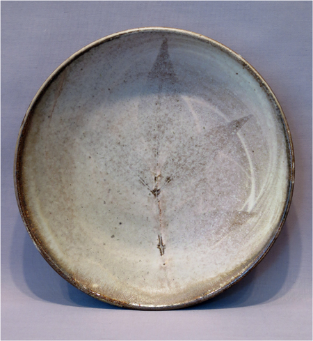 Robert Archambeau, Leaf Plate (16/46b), wood-fired stoneware, 1 5/8 X 9 1/8 dia. in.