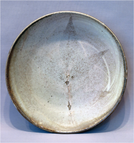 Robert Archambeau, Dotted Impressed Plate (16/42b), wood-fired stoneware, 1 7/8 X 8 dia. in.
