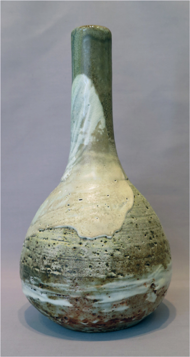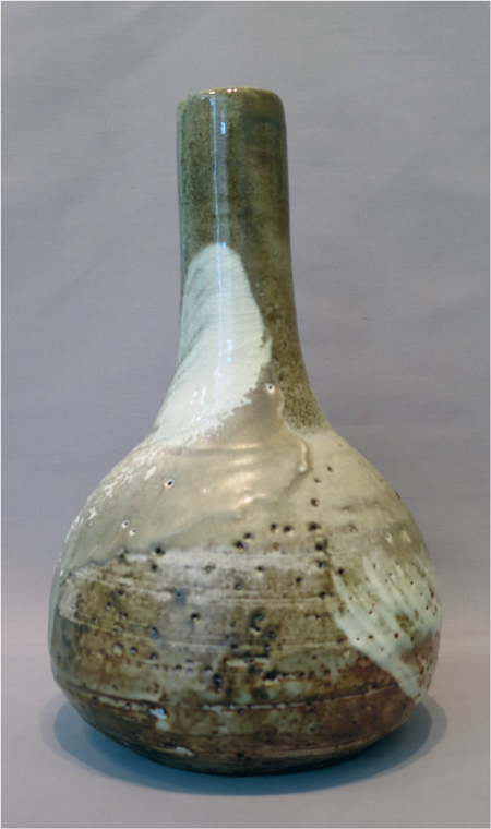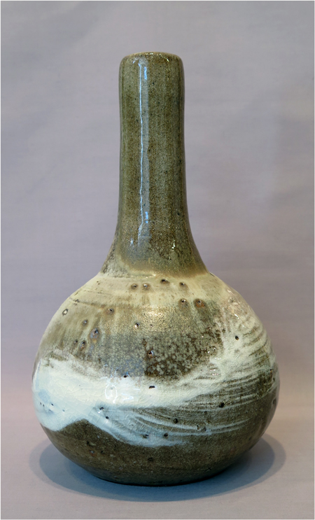 Robert Archambeau, Bottle/Vase (16/04b), wood-fired stoneware, 12 7/8 X 8 dia. in., SOLD.