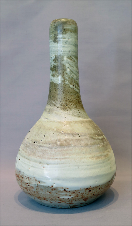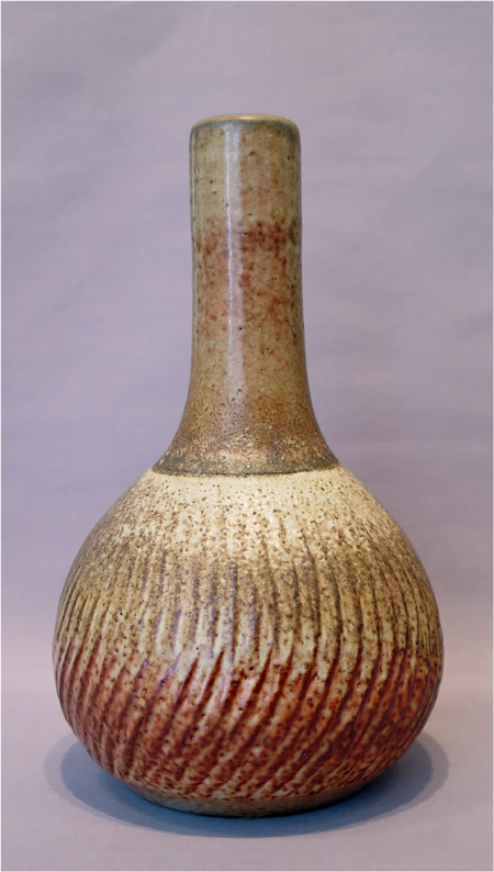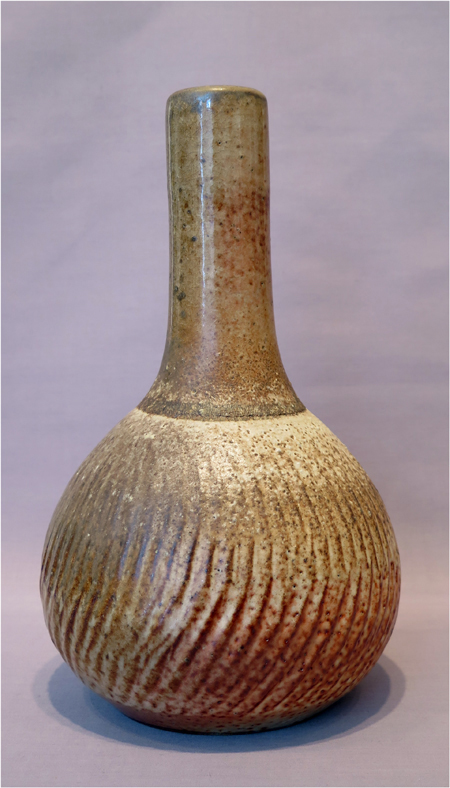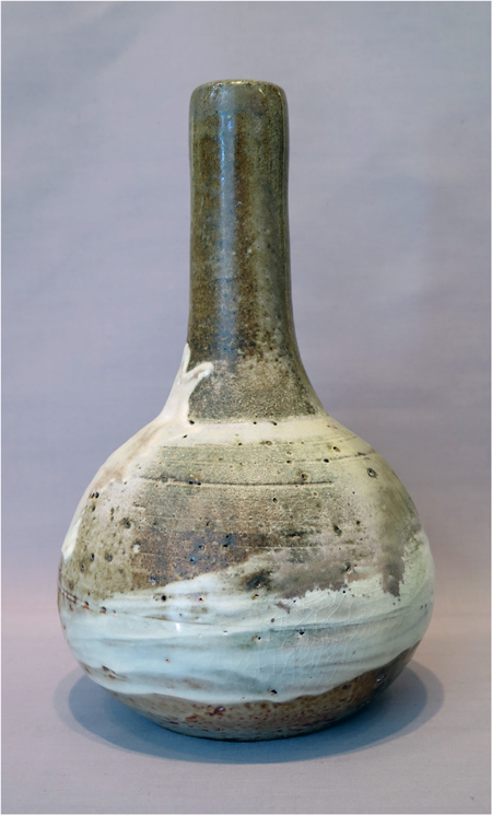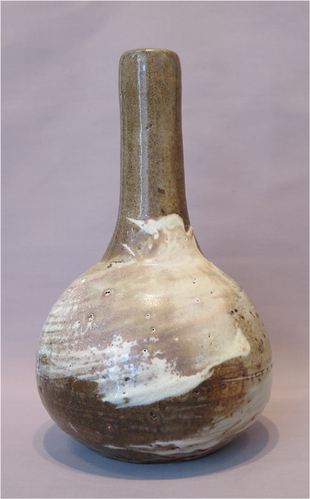 Robert Archambeau, Bottle/Vase (16/04c), wood-fired stoneware, 12 7/8 X 8 dia. in., SOLD.