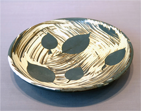 Robert Archambeau, Leaf Plate (16/46a), wood-fired stoneware, 1 5/8 X 9 1/8 dia. in.