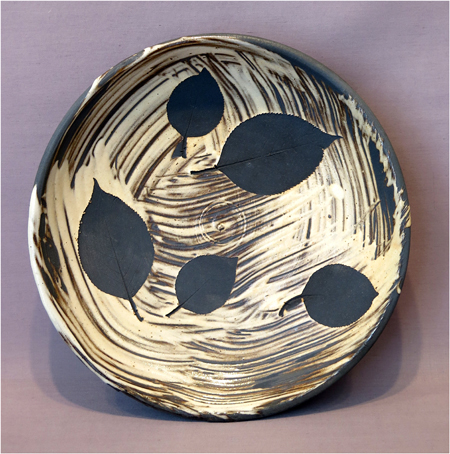 Robert Archambeau, Black Leaf Plate (16/40b), wood-fired stoneware, 1 7/8 X 8 5/8 dia. in.