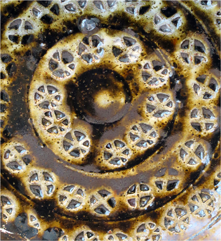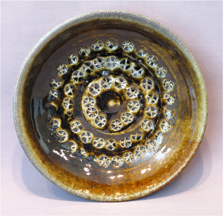 Robert Archambeau, Dotted Impressed Plate (16/42c), wood-fired stoneware, 1 7/8 X 8 dia. in.