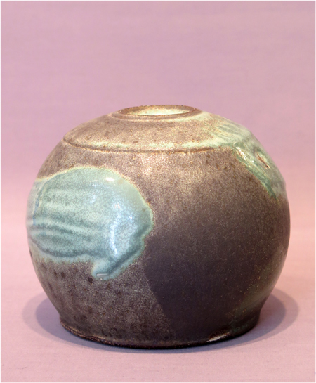 Robert Archambeau, Dome Vase (16/12c), wood-fired stoneware, 5 1/4 X 6 1/2 dia. in., SOLD.