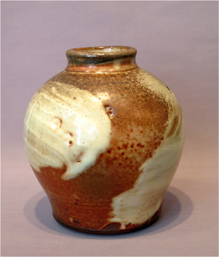 Robert Archambeau, Dome Vase (16/12b), wood-fired stoneware, 5 1/4 X 6 1/2 dia. in., SOLD.