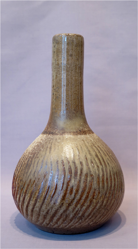 Robert Archambeau, Bottle/Vase (16/03b), wood-fired stoneware, 14 3/8 X 7 5/8 dia. in., SOLD.
