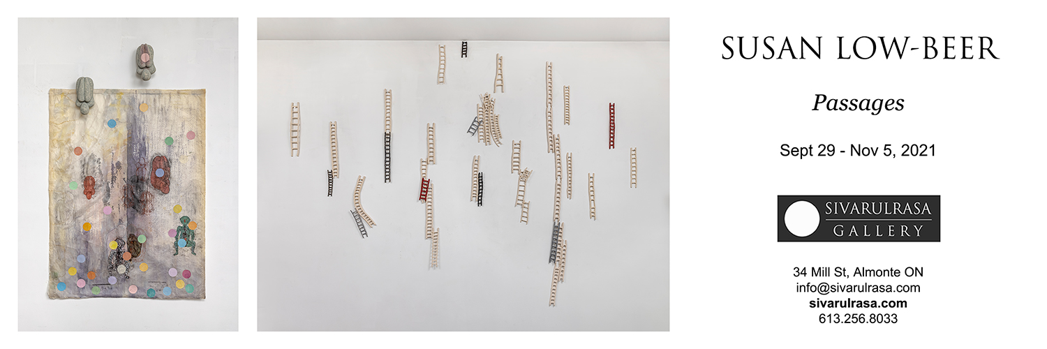 Artist Talk & Virtual Vernissage: Tuesday October 12, 7:00 – 8:00 p.m. Artist Susan Low-Beer will join us live via Zoom to talk about her installation. You can join us from the comfort of your home through a video link that can be accessed on your computer, tablet, or smartphone. Please email us at info@sivarulrasa.com and we will send you the link.