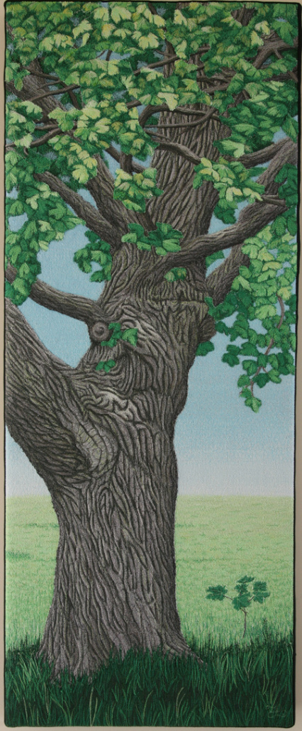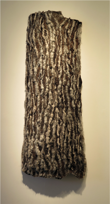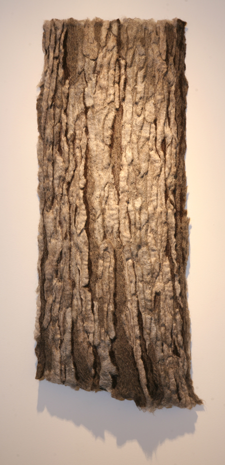 Tracey Lawko, Sugar Maple (bark study), 2016, wool, mohair, thread, fabric, 45 X 12 X 2 in.