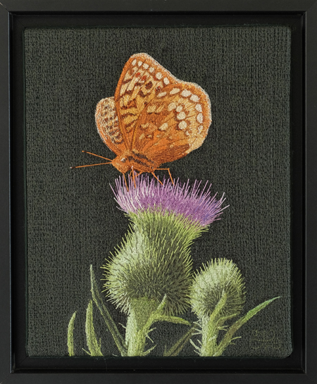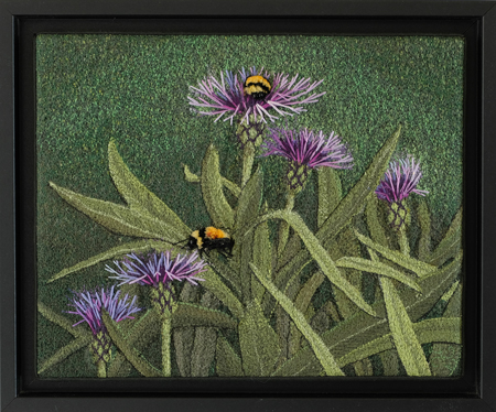“I’ve been fascinated by insects since I was a child-maybe it has something to do with being the daughter of an entomologist. In recent years, I have become increasingly aware of the changing patterns of the bees and butterflies in my garden and around my studio in the Niagara Escarpment. I was relieved to see several pairs of Monarchs flitting about this year. Five years ago there were none, while 10-12 years ago I remember seeing large groups of them. It seems to me that I used to see many more bumble bees too. As they move from flower to flower collecting pollen, they enable the continuation of our food crops and flowering plants. I am concerned about their declining populations due to habitat loss, pesticide use and disease. I have created this collection of nature studies to pay homage to our native pollinators and to draw attention to the importance of these small creatures to our survival.”