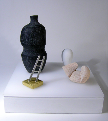 Vivienne Jones, homage with ladder, 2016, copper, resin, clay, sterling silver, brass, acrylic, 6 X 5 1/2 X 5 1/2 in.